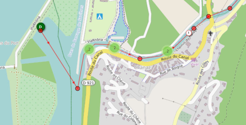 Avant d’entrer dans Chanaz, prendre la direction « Stade » « Camping les îles » « Port de plaisance »