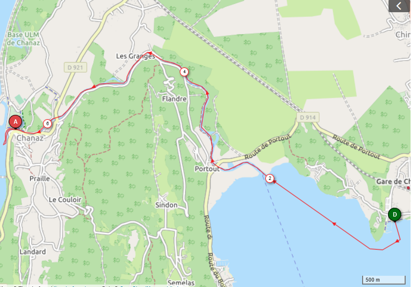 Le demi-tour se fera face à la plage de Châtillon à Chindrieux à proximité de l’entrée du port.